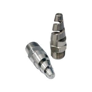 Espiral de Pulverização Inox 1/2″ NPT Macho. Este tipo espiral de passagem livre em formato cônico é utilizado para de pulverização, são bicos compactos para determinados tamanhos de tubo e a passagem livre do espiral minimiza entupimento. Com seu tamanho compacto pode ser instalado na maioria dos sistemas de tubos. Fabricados em Inox com rosca NPT ou BSP.- Material: