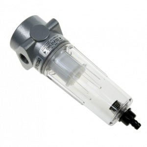 O ar comprimido necessita de tratamento, antes de ser utilizado em qualquer tipo de aplicação, garantindo as condições ideais de qualidade e ajuste da energia, para realizar as automações projetadas. O filtro de ar é um componente crítico no sistema pneumático, pois elimina as impurezas sólidas, oriundas do ambiente onde é captado o ar, ou ainda durante no trajeto pelos componentes e tubulações. O grau de filtragem depende do tipo de componente que utilizará este ar comprimido. O filtro, retira ainda, a água livre vinda junto com o ar, através da centrifugação criada dentro do conjunto e é eliminada pelo dreno semi-automático ou automático, instalado no fundo do copo. O filtro de ar comprimido da série 21 tem as seguintes características: bitola de 1/4” BSP, pressão máxima de entrada 10 Bar, pressão de trabalho – de 0,5 à 7 Bar, temperatura de trabalho -5⁰C à +60⁰C e vazão de 1680 L/min.