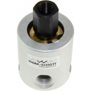 A união rotativa é um distribuidor múltiplo, com 1 entrada axial de 1/4" NPT e 4 saídas radiais na Bitola de 1/4" BSP, que interliga um ponto fixo (alimentação) à quatro pontos móveis (saídas). Construído em corpo de alumínio, eixo em aço, mancal de latão e vedações em buna N, possui rolamento interno que reduz os atritos e prolonga a vida útil do equipamento. Trabalha com pressões até 10 bar, temperatura de -10 ⁰C à + 60 ⁰C e rotações até 30 rpm (rotações por minuto). Utilizado em para interligar um ponto de alimentação fixo à outros pontos móveis giratórios, evitando a torção de tubos. São peças especialmente projetadas para aplicações onde o equipamento requer movimento, curvatura e torção de tubos. Aplicados em mesas rotativas, mancais, carrosséis, cabeçotes oscilantes, etc.