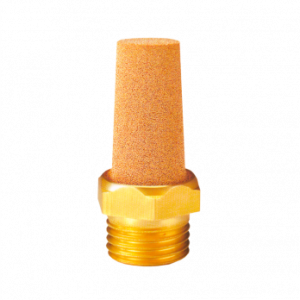 Os Silenciadores pneumáticos ou de escape de ar, são acessórios utilizados principalmente em válvulas, para reduzir ruídos causados pela exaustão do ar comprimido; aplicados também como filtros nos orifícios de ventilação de válvulas, cilindros, reservatórios, etc, para bloquear entrada de sujidades. Sua aplicação e eficiência estão diretamente relacionada com a porosidade e área efetiva de passagem, que determinam a redução do ruído e a vazão necessária, para o bom funcionamento do equipamento em que está acoplado. Construídos de diversos materiais, formatos e tamanhos, atendem as mais variadas aplicações industriais. Nossa linha oferece silenciadores, conforme modelo, nas bitolas de M5, 1/8”, 1/4", 3/8”, 1/2" e 1” BSP e nos materiais: Bronze Sinterizado Compactos (para espaços reduzidos) Bronze Sinterizado Longos tolerantes à temperaturas mais elevadas, até + 80 ⁰C), com Reguladores de Fluxo incorporados (para controle de velocidade de atuadores), Charuto em Polietileno ou Alumínio (permitem maiores vazões e reduções de ruídos), Malha de Aço Inox (equipamentos sujeitos à corrosão ou lavagens frequentes).Descrições técnicas