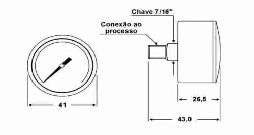ou em aço inox AISI 304. Mecanismo, soquete e tubo bourdon em ligas de latão ou tomback.